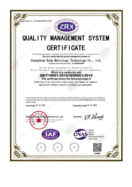 | Norme: | GB/T19001-2016/ISO9001:2015 |