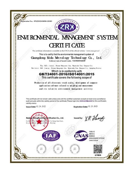 | Norme: | GB/T24001-2016/ISO14001:2015 |