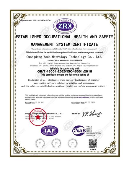 | Norme: | GB/T 45001-2020/ISO45001:2018 |